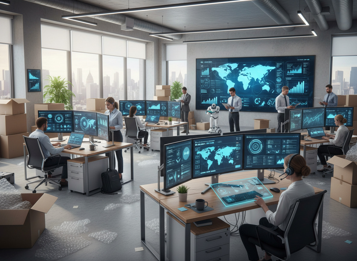 生命保険代理店、新事務所移転、最先端の営業体制のイメージ画像を作成してください。テキスト入れないでください。